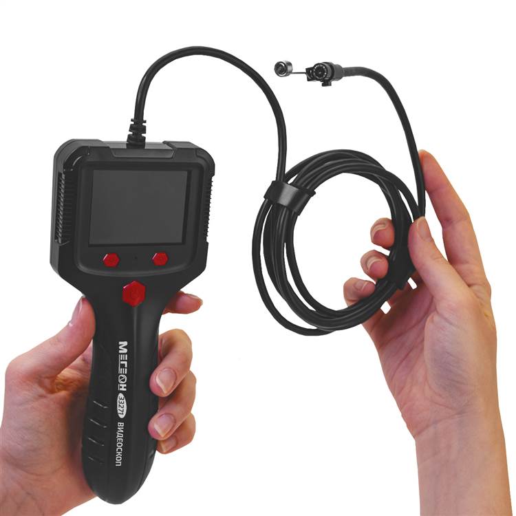 Видеоскоп МЕГЕОН 33271 предназначен для визуального осмотра и проверки труднодоступных мест, скрытых полостей, внутренних частей оборудования, вентиляционных шахт и других объектов без повреждения их. В том числе полностью неосвещенных участков и имеющих малые входные отверстия (трубопроводы, системы вентиляции). Это достигается за счет гибкого зонда малого диаметра, и камере во влагозащитном корпусе. Длина зонда составляет 2 метра, на конце зонда располагается видеокамера высокой четкости с регулируемой подсветкой пространства перед камерой. Изображение исследуемого объекта выводится на дисплей. Видеоскоп является отличным и недорогим помощником в решении различных задач, таких как: ремонт и обслуживание различной техники, инспекция труднодоступных или скрытых полостей, строительство, сантехника, реставрационные работы, образовательный процесс, для других различных исследований. Этот простой и в тоже в время необходимый прибор, поможет заглянуть в самые труднодоступные и скрытые места.