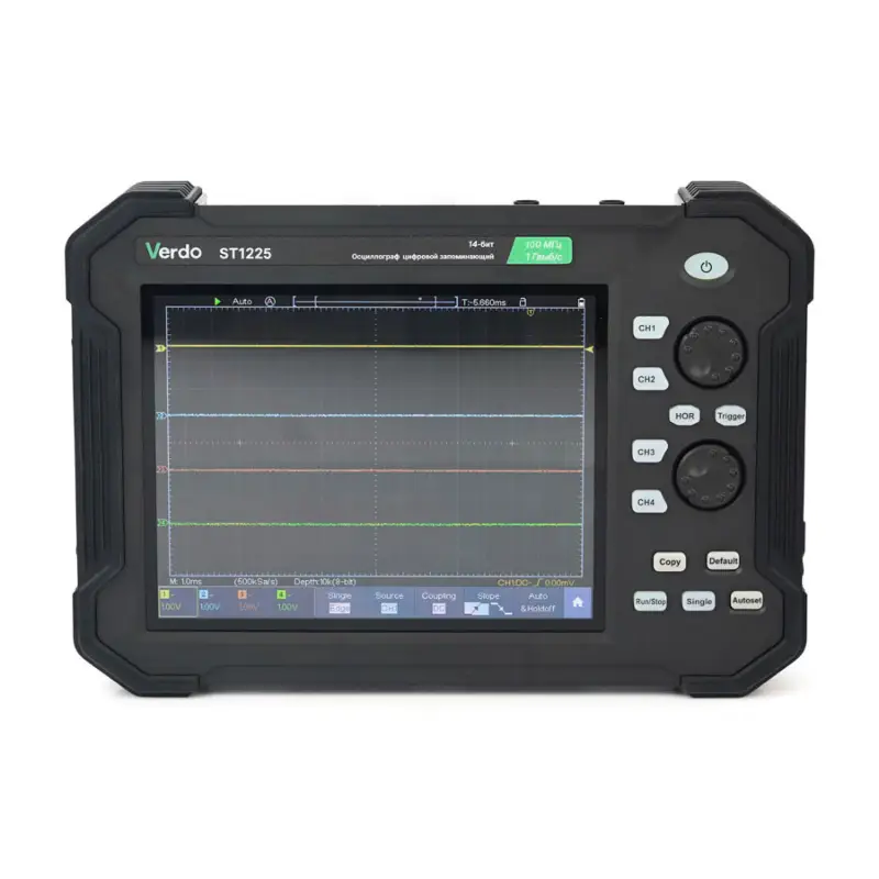 Осциллограф VERDO ST1225 представляет собой современный планшетный прибор, сочетающий высокую производительность с удобством использования. Благодаря компактному форм-фактору и 8-дюймовому дисплею он обеспечивает комфортную работу как в лабораторных условиях, так и в полевых. Прибор внесен в ГосРеестр СИ под номером 90665-23, что подтверждает его соответствие российским стандартам точности и надежности.